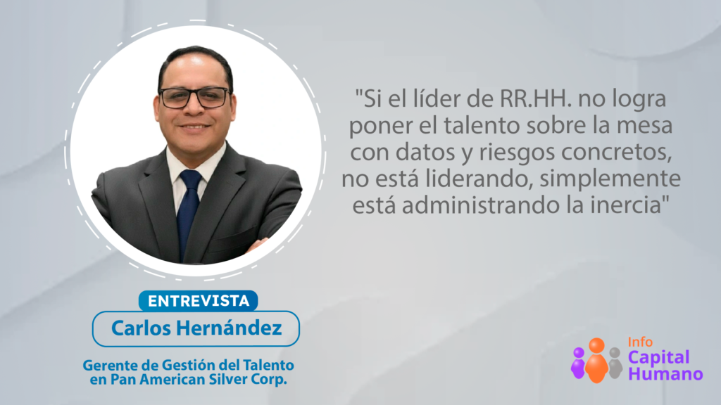 Para profundizar en este enfoque sistémico, conversamos con Carlos Hernández, Gerente de Gestión del Talento en Pan American Silver Corp., quien sostiene que el líder de HR debe actuar como un “arquitecto organizacional” capaz de diseñar la infraestructura invisible que sostiene la operación. Con una visión crítica hacia los modelos convencionales, Hernández enfatiza que la relación entre RR.HH. y la alta dirección debe ser de copropiedad: mientras la operación es dueña de los resultados, Gestión del Talento debe ser dueña del sistema, aportando evidencia rigurosa sobre roles críticos y preparación de sucesores para evitar que el negocio decida por intuición.