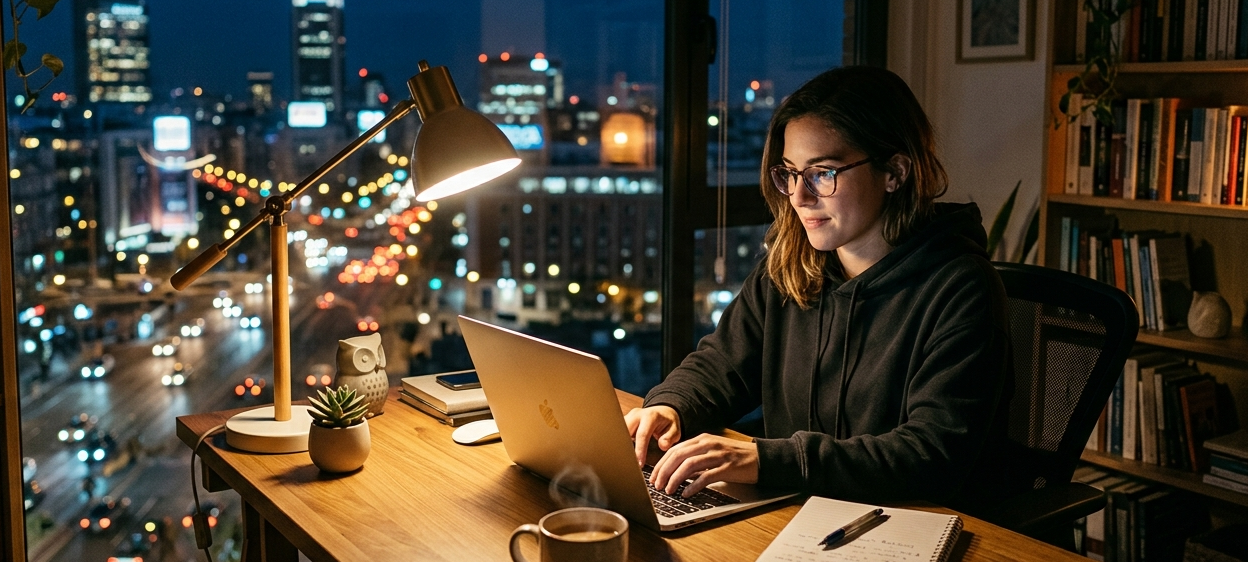 - Creatividad sin Interrupciones: La noche ofrece un silencio cognitivo que las oficinas diurnas no pueden replicar. Sin notificaciones constantes o llamadas imprevistas, los búhos entran en estados de “Deep Work” con mayor facilidad.