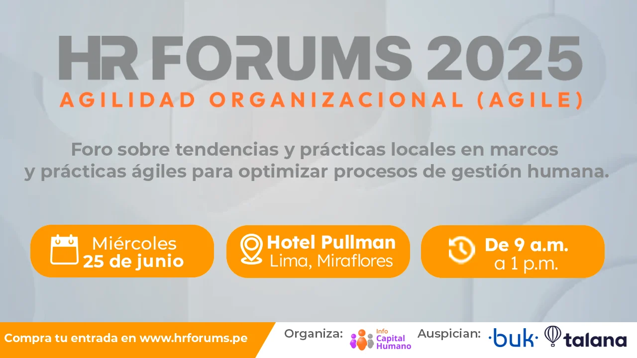 El próximo 25 de junio, en el Hotel Pullman Lima, Miraflores, tendrá lugar el HR Forum Agile 2025 -organizado por Info Capital Humano- a cargo de Erick Masgo, C...