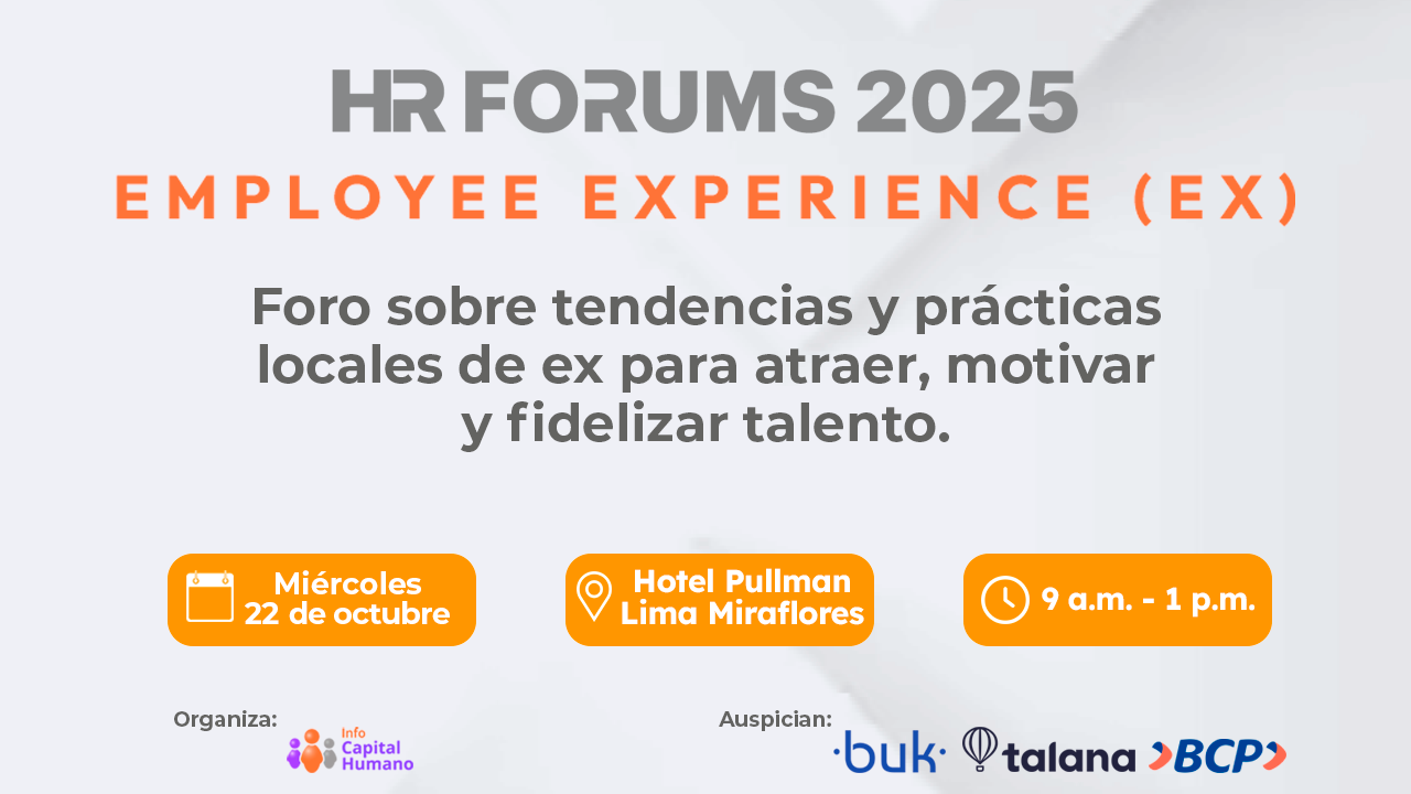 El 22 de octubre, en el Hotel Pullman de Miraflores, se dará el HR Forum Employee Experience 2025 el foro sobre tendencias y prácticas locales de ex para atraer...