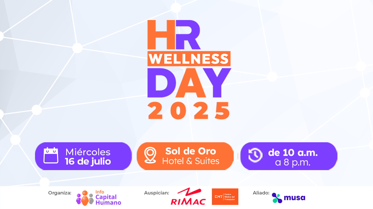 Este miércoles 16 de julio, en el Sol de Oro Hotel & Suites, Miraflores, se llevará a cabo el HR Wellness Day 2025, evento organizado por Info Capital Human...